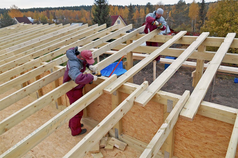 Черновая подшивка снизу по стропилам